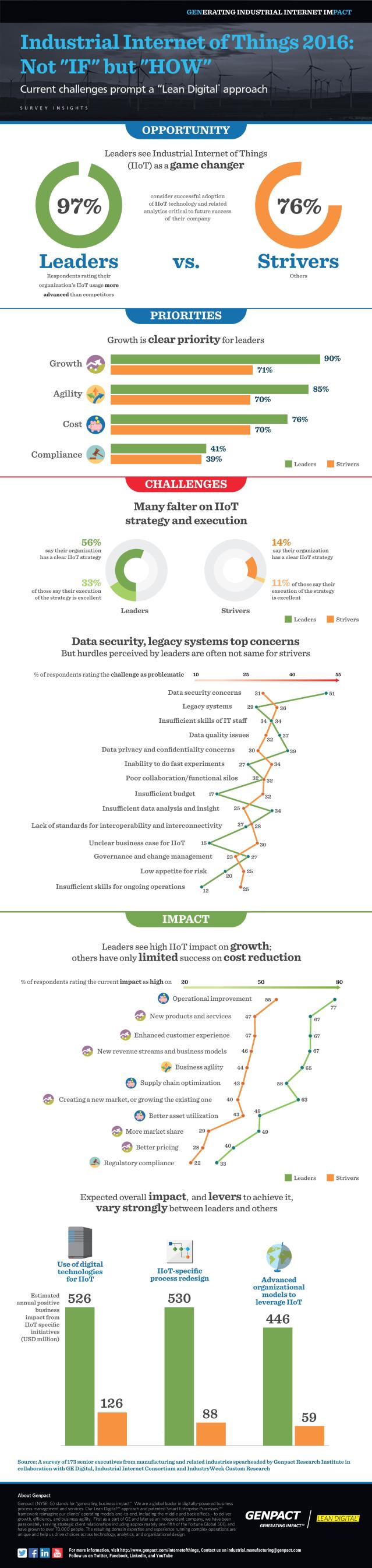 Recientemente el Genpact Research Institute y la publicación Industry Week, en colaboración con GE Digital y el Industrial Internet Consortium, han publicado una investigación sobre la situación y desafíos del internet de las cosas para el sector industrial (Industrial Internet of Things -IIoT).